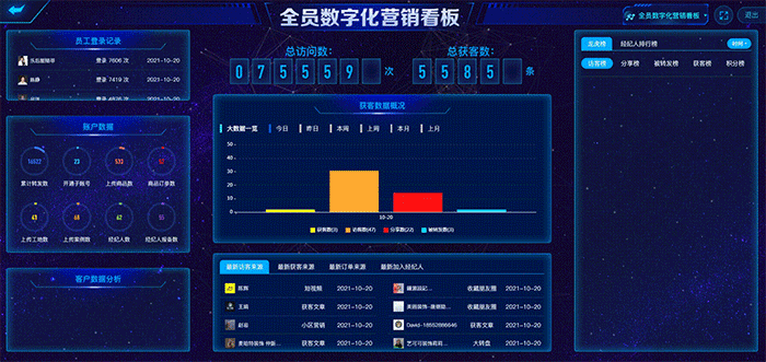 通過大區還可知下面的經銷商、門店的情況,而經銷商、門店也可知本店內全員的營銷獲客數據詳情。方便總部制定激勵經銷商、門店的營銷政策、活動政策,而經銷商、門店也可以對導購的銷售數據進行有效獎懲,從而更有利于一線銷售。整套運管系統,包括了全員數字化營銷看板、客戶管理大數據看板、營銷活動專屬看板、區域門店專屬看板、在施工地管理看板、龍虎榜和BOSS數據看板。