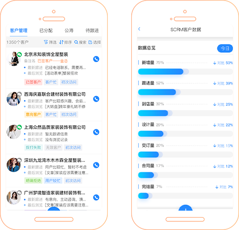 支持對客戶信息的錄入、跟進、標簽、分配、查詢,同時可實現公海機制,通過對長期無銷售進展的客戶的釋放、再分配,從而達到客戶的內部流轉,提升客戶跟進效率和簽單轉化率。